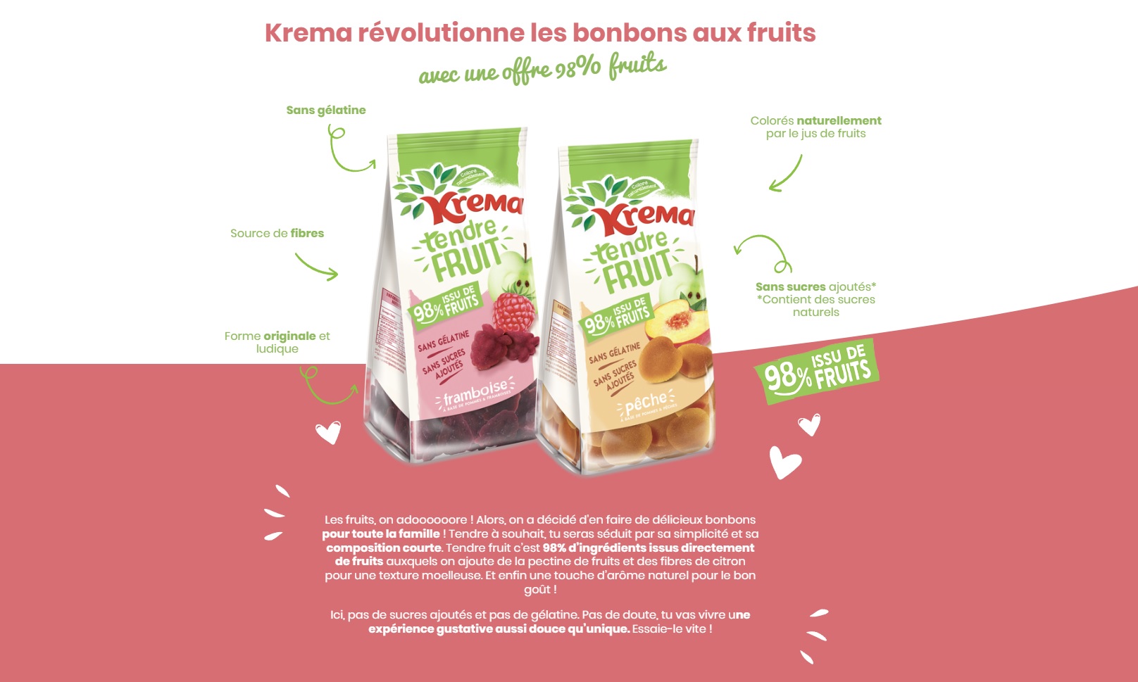 Quand Krema lance un nouveau produit, les textes doivent être courts, incisifs et surtout, correspondre à la ligne éditoriale et au ton déjà développées par la marque. Pour cette nouvelle page, nous avons opté pour une prise de parole familière, tout en mettant l’accent sur les aspects différenciant du produit. Ludique et informatif !